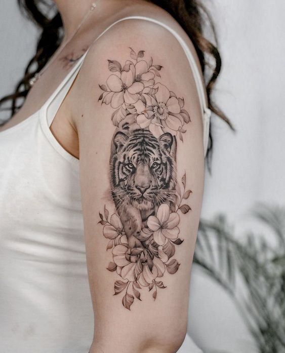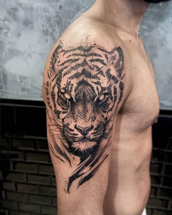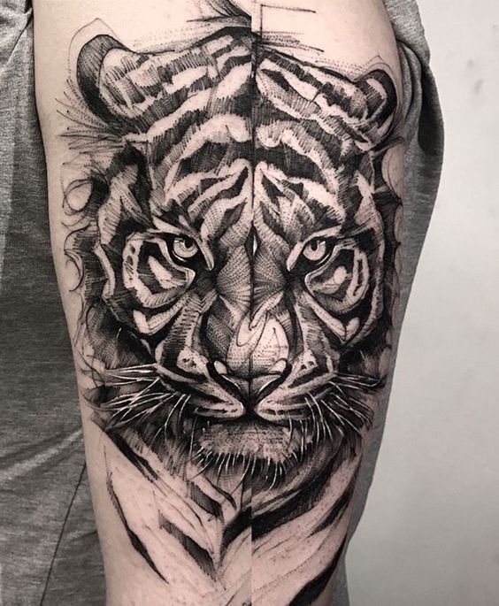 Tiger tattoos look spectacular alone or as part of a complex work.